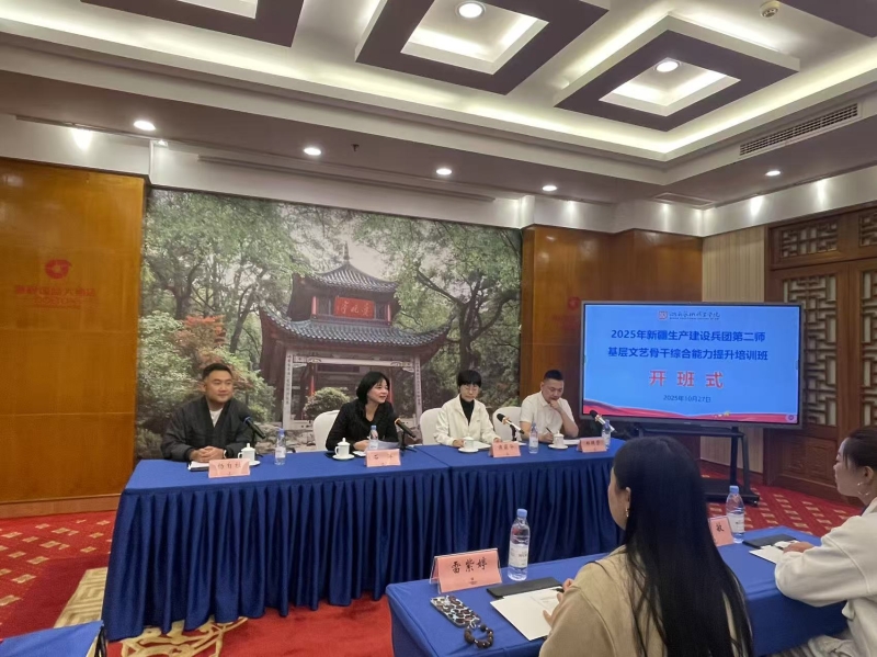 金秋十月,湘江如练,岳麓含情。10月27日上午,由新疆生产建设兵团第二师铁门关市文化体育广电和旅游局、第二师公共文化服务中心主办,全国基层文化队伍培训(湖南)基地、湖南艺术职业学院承办的“2025年第二师铁门关市基层文艺骨干综合能力提升培训班”开班仪式在长沙隆重举行。来自天山南麓、孔雀河畔的基层文艺工作者与湖湘大地的艺术教育者们齐聚一堂,共同开启为期七天的学习交流之旅。